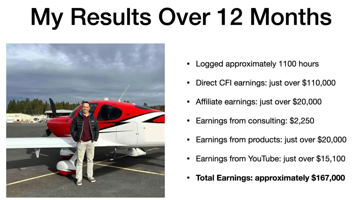 In just 12 months as an independent CFI, I earned just over $167,000 and I want to show you how to replicate my success.